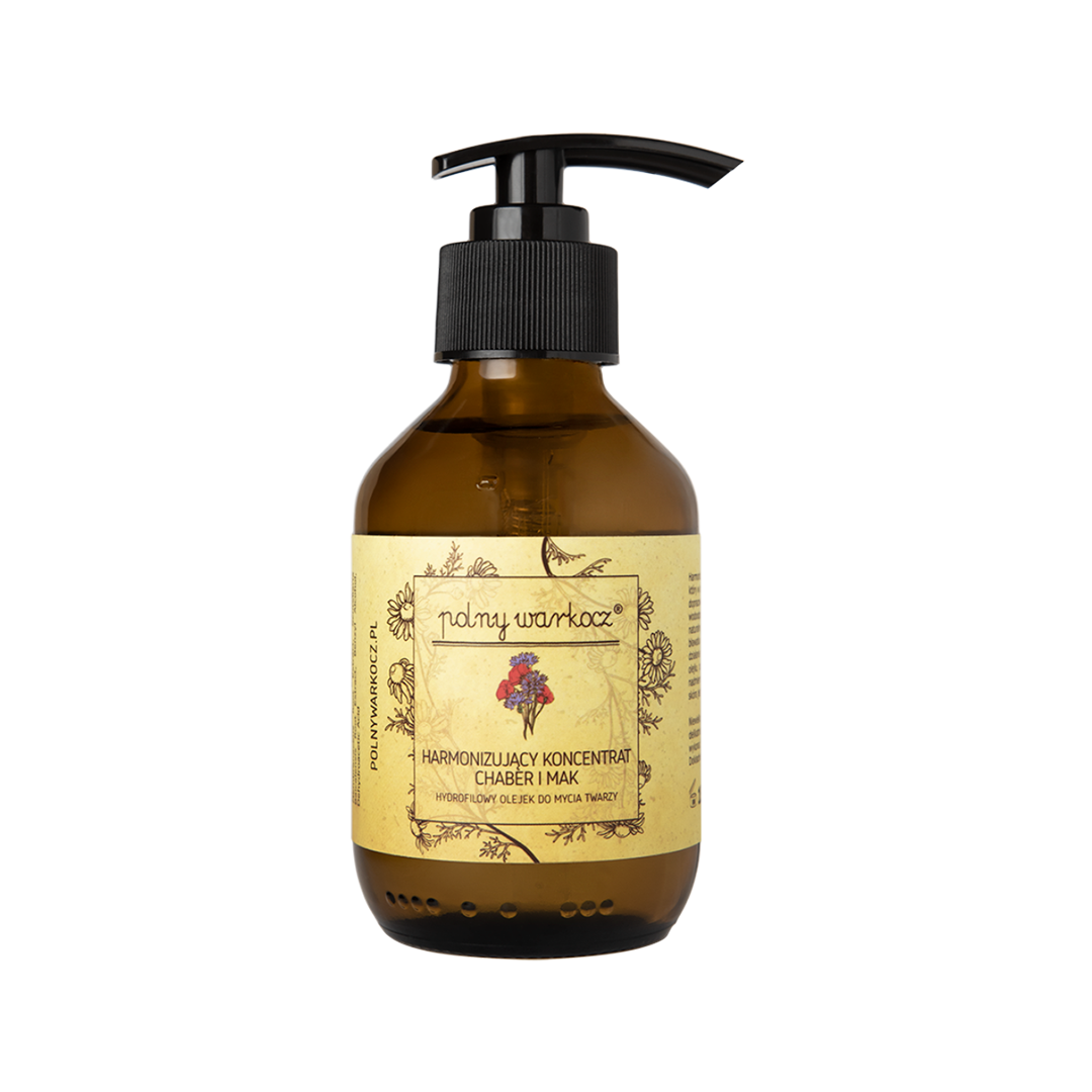 Harmonizujący koncentrat to delikatny olejek myjący do twarzy, który w kontakcie z wodą zamienia się w białą emulsję. Dzięki tak dopracowanej recepturze olejek skutecznie usuwa nawet wodoodporny makijaż i zanieczyszczenia, bez naruszania naturalnej bariery hydrolipidowej. Ekstrakt z kwiatów chabra bławatka w synergii z olejem z nasion maku polnego wykazują działanie odżywczo – kojące i nawilżające. Właściwości emulgujące olejku pozwalają dokładnie oczyścić twarz nie pozostawiając nadmiernej warstwy olejowej. Dzięki łatwej do spłukania formule skóra jest odświeżona i dokładnie oczyszczona.